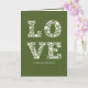 Elegante y a la moda tarjeta de bienvenida doblada con letras apiladas que escriben "LOVE" en motivos florales y geométricos blancos sobre un fondo de colores vivos. Texto de mensaje personalizable. Perfecto para El día de San Valentín, Día más dulce, aniversario boda o cualquier día! Disponible en una selección de colores de fondo vibrantes. También disponible como tarjeta plana moderna.