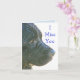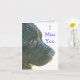 Dígale a ese amigo, cónyuge u otra persona especial que los extraña con esta linda tarjeta que presenta a un perro negro de Terranova hermoso pero con cara triste. El texto en la parte delantera dice: "Te extraño" y en el interior del texto se lee: "Por favor, vuelve pronto a casa. ¡Estaré esperando en la puerta principal con sus zapatillas y el periódico seguido con un gran beso descuidado!" El texto frontal y el interior son personalizables.