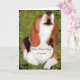 Este lindo Beagle envía sus saludos con muchos aullidos. Los Beagles son famosos por sus palabras y habilidades para cantar a dúo. ¡Nada se les escapa!