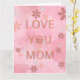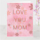 "Celebra a mamá con esta hermosa tarjeta rosa adornada con un impresionante diseño floral. Con colores vibrantes, expresa perfectamente tu amor y aprecio. Ya sea que seas hijo o hija, el mensaje más sincero que hay en el interior—‘Te amo, Mamá’— es la manera más dulce de honrar a la mujer especial en tu vida.