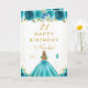 Tarjeta Teal Floral Blonde Hair Girl Birthday