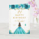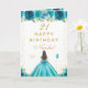 Tarjeta Teal Floral Brunette Hair Girl Birthday