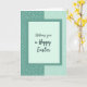 This design shows a tall, serene layout with the background split into two vertical panels that feel like they lean gently toward each other, like close friends sharing a quiet moment 🌷. The left panel is a deep teal with an organic, textured pattern that suggests woven fabric or a natural mosaic. The right panel shifts to a lighter mint green with soft mottling, like dappled light across a calm wall. A thin, muted teal border frames a pale aquamarine rectangle in the center, keeping everything neatly aligned. Centered inside that light rectangle is a flowing, cursive-style greeting in a dark teal tone, sized to stand out without crowding the space 🐰. The lettering sits comfortably in the middle with generous margins, giving the message room to breathe against the airy background. Along the edges, the deeper teal texture on the left contrasts with the smoother mint surface on the right, while the central frame stays crisp and evenly spaced.