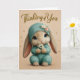 Tarjeta Teal Knit Baby Bunny Thinking of You Card
