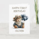 Tarjeta Teddy Bear with Balloons 1st Birthday