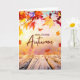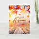 Envía cálidos saludos estacionales con esta tarjeta de vacaciones de “Bienvenido Otoño”, que presenta ricos tonos naranjas y rojos inspirados en las hojas de otoño. Perfecta para el Día de Acción de Gracias, las fiestas de noviembre o simplemente para compartir deseos acogedores de otoño con familiares y amigos. Una forma festiva de dar la bienvenida a la belleza de la temporada.