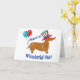 Feliz el 4 de julio de este Dachshund patriótico como ella enfoca cerca en su triciclo