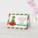 Lindo duendecillo festivo dibujado a mano sentado en la bolsa de juguetes de Santa. Tarjeta de Navidad festiva roja, verde y blanca que se puede personalizar en el interior. Simplemente agregue su nombre en la sección personalizada.
