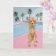 Estas tarjetas de felicitación incluyen un retrato acuático de un caniche de color marrón que sostiene una raqueta de tenis en una pista de tenis rosa.