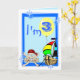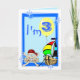 3.ª tarjeta de cumpleaños con divertidos piratas y barcos, payaso, pingüino y globos, sobre fondo azul. Personalice fácilmente este diseño agregando o cambiando el texto.