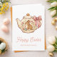 Celebra la Pascua con esta tarjeta de felicitación que presenta un adorable conejito acurrucado en una tetera bellamente decorada, pequeños huevos de Pascua y encantadores acentos florales, todo atado con un dulce lazo rosa. Perfecto para enviar cálidos deseos a familiares y amigos durante la festividad primaveral. Personaliza fácilmente con el nombre de tu familia o un mensaje personalizado dentro para hacerlo único.