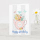 Tarjeta Tetera rosa con flores y mariposas de cumpleaños