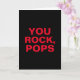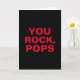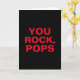 Sencilla, moderna y directa, esta versátil tarjeta para tu Papá puede ser utilizada como tarjeta del Día del Padre, tarjeta de cumpleaños, para la jubilación de tu padre o para cualquier ocasión especial para celebrar a tu padre. Cuenta con tipografía roja en negrita sobre un fondo negro contrastante con el mensaje "YOU ROCK, POPS" en el exterior. Se incluye una plantilla de texto en caso de que desees personalizar el nombre o apodo que usas para tu Papá, es decir, Papá, Padre, etc. El interior se deja intencionalmente en blanco para dar cabida a cualquier mensaje personal que desees incluir.