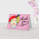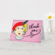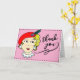 Sweet and simple thank you card. Pink with a vintage girl drawing. The front says Thank you!
