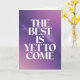 A high-impact, inspiring card featuring the optimistic message: "THE BEST IS YET TO COME." The powerful white, bold lettering stands out against a stunning purple and pink cosmic gradient background with visible galaxy and stardust details. This design is perfect for sending a hopeful and motivating message to someone beginning a new chapter, graduating, or simply needing a reminder to focus on the future. Use it as a graduation card, a message of hope and encouragement, or a stylish piece of inspirational stationery for anyone who loves space or bold, modern aesthetics.
