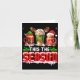 Tarjeta The Season Christmas Three Santa Reindeer Elf Coff