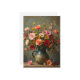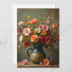 Beautiful brightly colored flowers in a pitcher on front of a Thinking of You card. The text on back can be changed. Image AI-generated by IveyCottage.