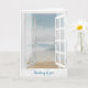 Starfish on the beach with an ocean view through the window with sheer curtains for thinking of you.
