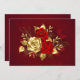 The composition of two artistically painted red roses and one golden rose, decorated with gold, jewel leaves on textured background.