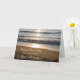 Feliz aniversario de boda para tía y tío con olas estrellándose en la playa al atardecer, y sentidos versos.