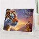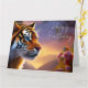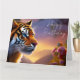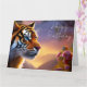 Tarjeta Tigre de ojos azules y flores rosas