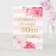 Feliz cumpleaños número 30 con flores color de agua rosa, rayas rosas y versos reflexivos.