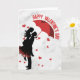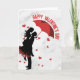 Celebra tu amor con esta elegante y romántica tarjeta de felicitación, que presenta una hermosa silueta de una pareja compartiendo un dulce momento bajo un paraguas rojo con forma de corazón. El diseño clásico en rojo y negro sobre un fondo limpio lo convierte en una elección atemporal para expresar tus sentimientos este Día de San Valentín.