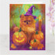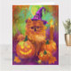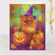 Tarjeta Tocante Perro Pomeraniano Halloween Bruja Y Calaba