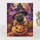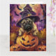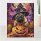 Tarjeta Tocante Perro Pug Halloween Bruja Y Calabaza