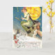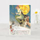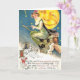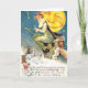 Imagen del vintage de una bruja en una postal de Halloween del palo de escoba.
