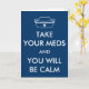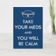 Una parodia del popular tema "MANTENER CALMA Y SEGUIR". Una gorra de enfermera reemplaza a la corona familiar acompañada de texto que dice: "TOME SUS MEDIOS Y USTED SERÁ TRANQUILO". Haz lo que la amable enfermera te dice que hagas.