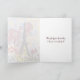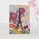 Este hermoso diseño de la Torre Eiffel presenta la torre artísticamente incorporada en un fondo con un telón de fondo de flores de Iris artísticas, la flor nacional de Francia. También hay varias flores de primavera delante de la Torre Eiffel. ¡Personaliza el interior con tu saludo personalizado!