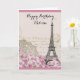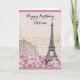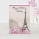 Tarjeta Torre Eiffel Vintage con flores rosadas Cumpleaños