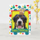 Celebra un cumpleaños con esta fantástica tarjeta de saludo de perro de la Montaña Suiza Grande. Con una torta balanceada en la cabeza, el diseño hará sonreír y reír. BTW, Este diseño tiene varias versiones, con diferentes colores de fondo. También hay una invitación a una versión Fiesta.