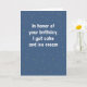 Haz que su cumpleaños sea extra divertido y tonto con esta graciosa tarjeta de cumpleaños. El ingenioso texto original de Lea Delaveris dice "En honor a tu cumpleaños, tengo pastel y helado" y el interior dice "Espero que también tengas un poco. ¡Feliz cumpleaños!" Esta tarjeta de cumpleaños es genial para cualquiera con un divertido sentido del humor. Encuentre más originales e inteligentes saludos de cumpleaños en la colección de Lea Delaveris Design.