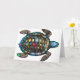 La obra de arte sobre su caparazón de tortuga evoca una inclusión y un color que trae alegría.