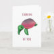 Esta tarjeta pensando en ti presenta una pintura de acuarela de una linda tortuga marina con caparazón morado. Ver nuestra tienda para más tarjetas de felicitaciones de animales marinos