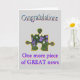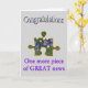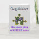 Trabajo del pedazo. Una tarjeta de la enhorabuena para las diversas ocasiones incluyendo la venta de un hogar o la compra de un nuevo, pasando un examen en la escuela, la universidad o la universidad o la prueba quizá de conducción, consiguiendo un nuevo trabajo y tanto más, la tarjeta tiene "enhorabuena" y "un más pedazo de GRANDES noticias" en el frente con una pieza de un rompecabezas. Dentro de la tarjeta muestra que más pedazos del mismo rompecabezas el pedazo delantero vino con del texto "que es toda la colocación junto".