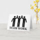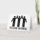 ¡El trabajo en equipo es donde está! Hace que el trabajo se haga más rápido y te enseña cómo ayudarse entre sí. Con tres personas agarrándose para representar el trabajo en equipo. Las palabras TEAM WORK en negrita son de color negro.
