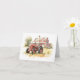 Tarjeta Tractor de granja antiguo con casa de granja antig