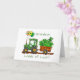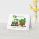 Celebre el Día de San Patricio con esta encantadora carta que incluye un tractor de yeso verde tirando de un vagón lleno de piedras de champú. Un gorra leprechaun se sienta sobre las rocas de champú, y tres globos con diseños de shamrock flotan desde la parte delantera del tractor. La escena se encuentra en una carretera de tierra, añadiendo un toque rústico. En la parte delantera se lee: "Nieto" encima del vagón y "Loads of Luck" debajo, lo que hace que esta tarjeta sea perfecta para un querido nieto. El interior comparte un sincero deseo de suerte y amor para alegrar el día. ¡Una manera encantadora de compartir la alegría del Día de San Patricio!