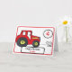 4.ª tarjeta de cumpleaños con un tractor rojo y un perro. Esta tarjeta ilustrada es perfecta para que los padres o abuelos se entreguen a un hijo o nieto cuando cumple cuatro años. Esta tarjeta dice "Feliz cumpleaños" por fuera e incluye espacio para la edad y el nombre del niño. El mensaje interno también se puede personalizar.