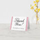 Este tradicional diseño de tarjetas de felicitación de agradecimiento incluye el mensaje "¡Gracias!" en la parte delantera del texto del guión, junto con un mensaje de personalizable en el interior. Una tarjeta de felicitación como esta podría ser usada para mostrar agradecimiento a alguien que ha asistido a un boda, un funeral, una graduación o algún otro evento.