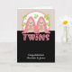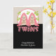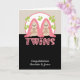 Bebés de dos Chicas nuevos gemelos, felicitaciones por sus recién llegadas... mellizos personalizados perezosos con mantas rosadas - presentados en un fondo con tema de hoja - tarjetas personalizadas de recién nacido de Ricaso