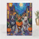 Tarjeta Traición o truco de perros Pitbull con disfraces d