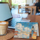 This fun, Travel Birthday card features a watercolor style abstract picture of a woman at an airport looking out the window and watching an airplane arrive from a flight on the runway. This is something I recently did. I love watching them land and takeoff at the airport. Perfect for travel lovers or aviation enthusiasts. Customize it with your own birthday wishes to make it extra special.