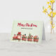 tarjeta de navidades con una imagen adorable y adorable hecha con acuarelas. Santa conduciendo un tren lleno de juguetes para todos los niños del mundo.