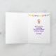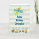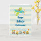 Una tarjeta de felicitación del feliz cumpleaños con un ilustracion temático del arte del cuarto de niños de los niños lindos de un pequeño montar a caballo del perrito en un aeroplano y un tren del juguete llenó de los animales caprichosos. Fije en una crema y un fondo rayado azul. El interior del mensaje del cumpleaños que usted puede modificar para requisitos particulares o dejar como es.