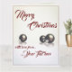 Tarjeta Tres bolas de navidad delante del fondo de la luz