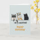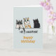 Envíe deseos a alguien muy especial en su cumpleaños con esta graciosa tarjeta de gato. Tres gatos con la expresión 'hey, hooman' y 'feliz cumpleaños' en color azul claro traerán una sonrisa a la cara de todos. En la parte trasera también está impreso el pequeño tamaño de tres ilustraciones gatos. La expresión de esta tarjeta se puede personalizar con tus propias palabras.
